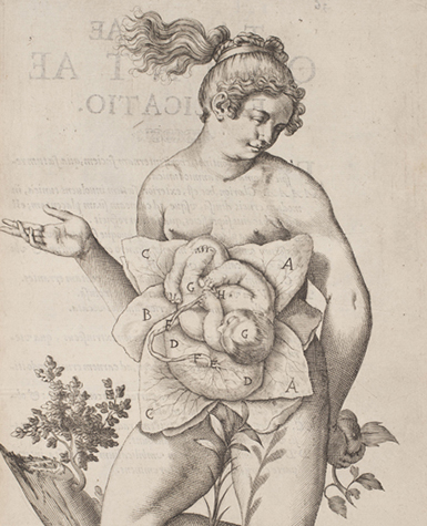 Image: Spiegel, detail of De formato foetu liber singularis aeneis figuris exornatus, [1626]. alc fQM21.S672 1627 Rare. Special Collections Research Center, The University of Chicago Library.