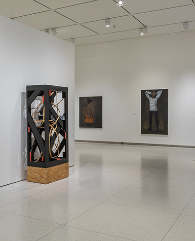 Installation view of Solidary & Solitary, showing works by Serge Alain Nitegeka and Lynette Yiadom-Boakye.
