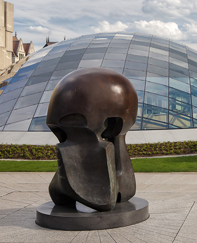 Image: Henry Moore, Nuclear Energy, Created 1963-67, Installed 1967, Bronze. Provided by the trustees of the B.F. Ferguson Monument Fund, 1967. Photo by Tom Rositer.