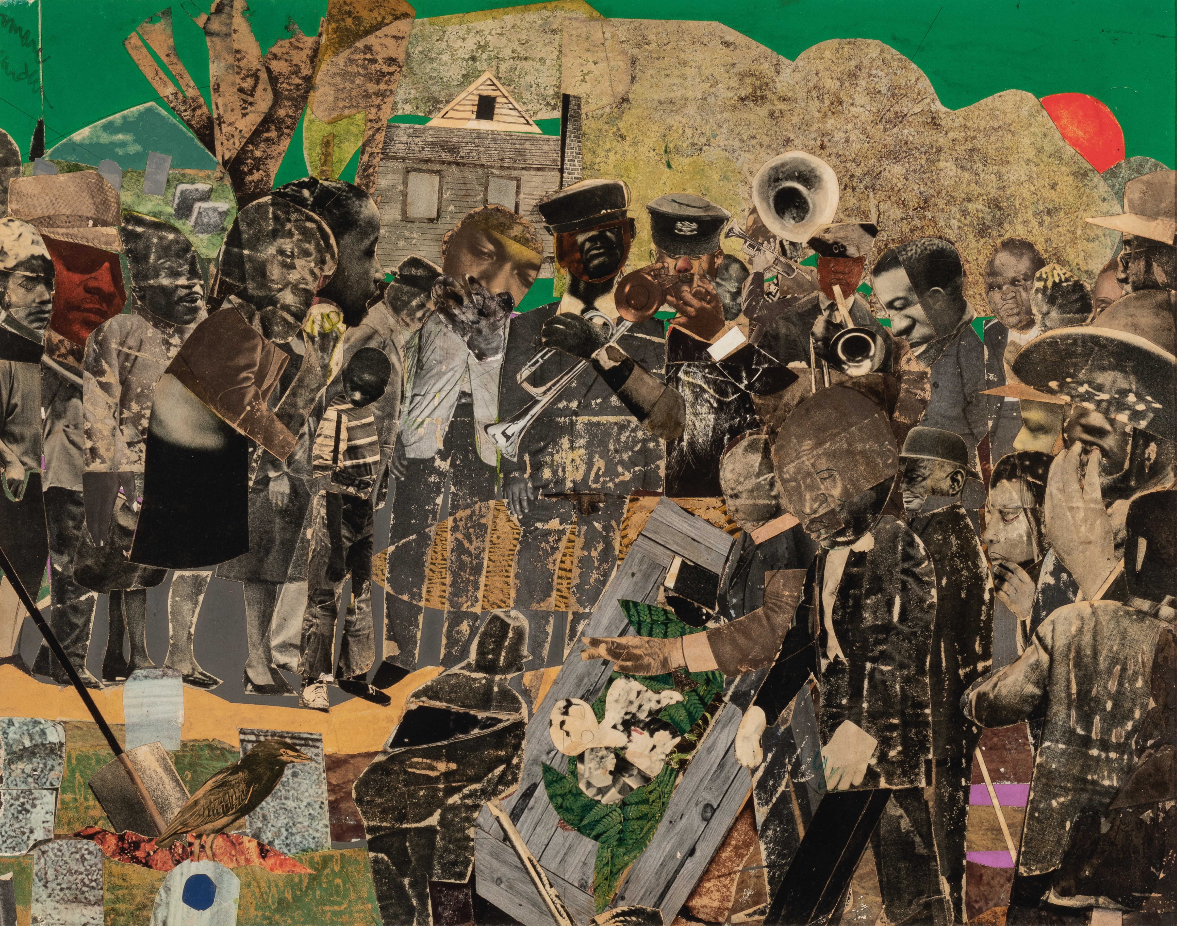 Image: Romare Bearden, Farewell in New Orleans (detail), 1975, Cut paper, newsprint, and glossy magazine paper