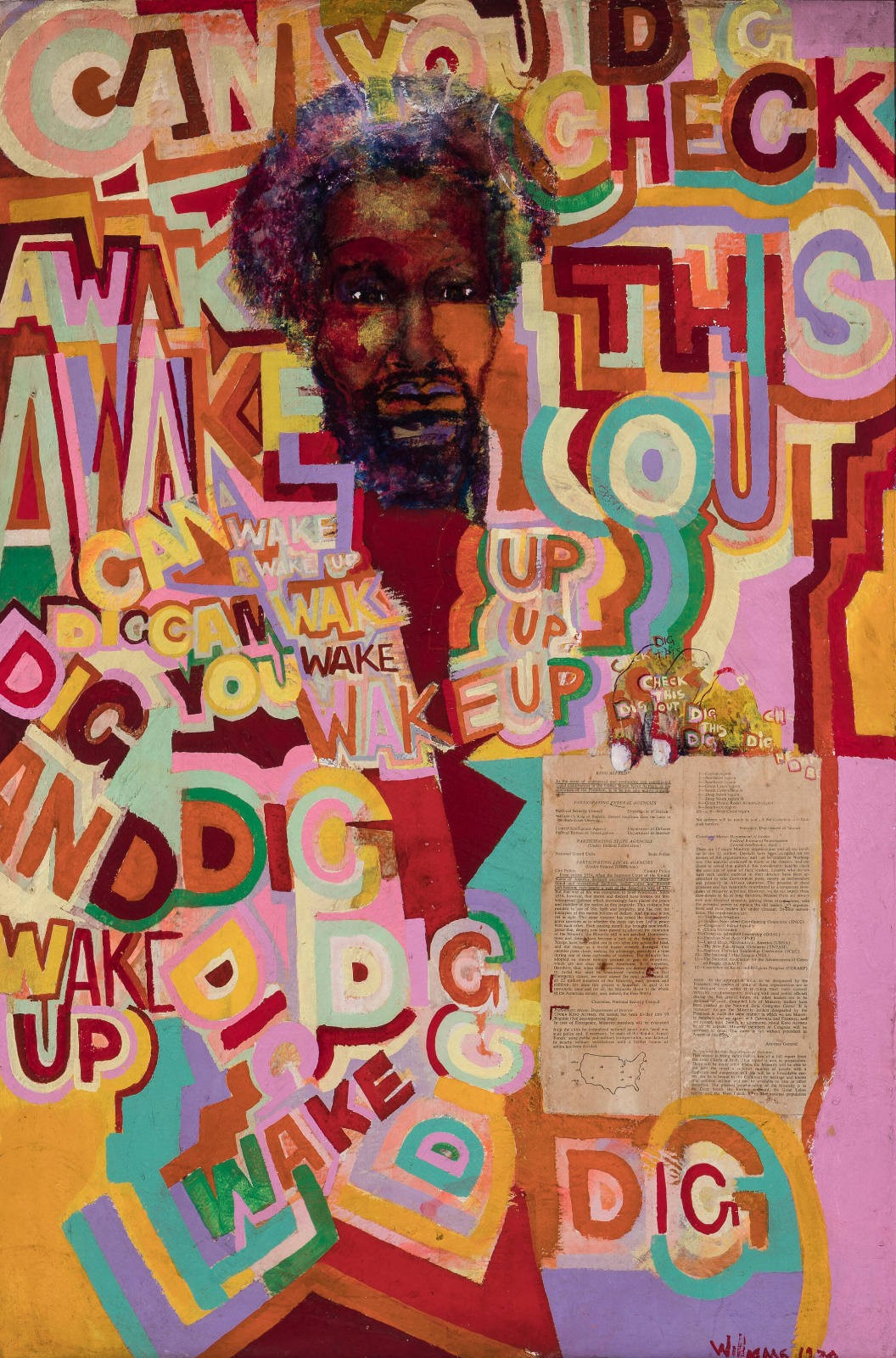 Image: Gerald Williams, Wake Up, 1970, Acrylic on canvas with applied paper, 42” x 28.” The Smart Museum of Art, The University of Chicago, Purchase, The Paul and Miriam Kirkley Fund for Acquisitions, 2017.7.