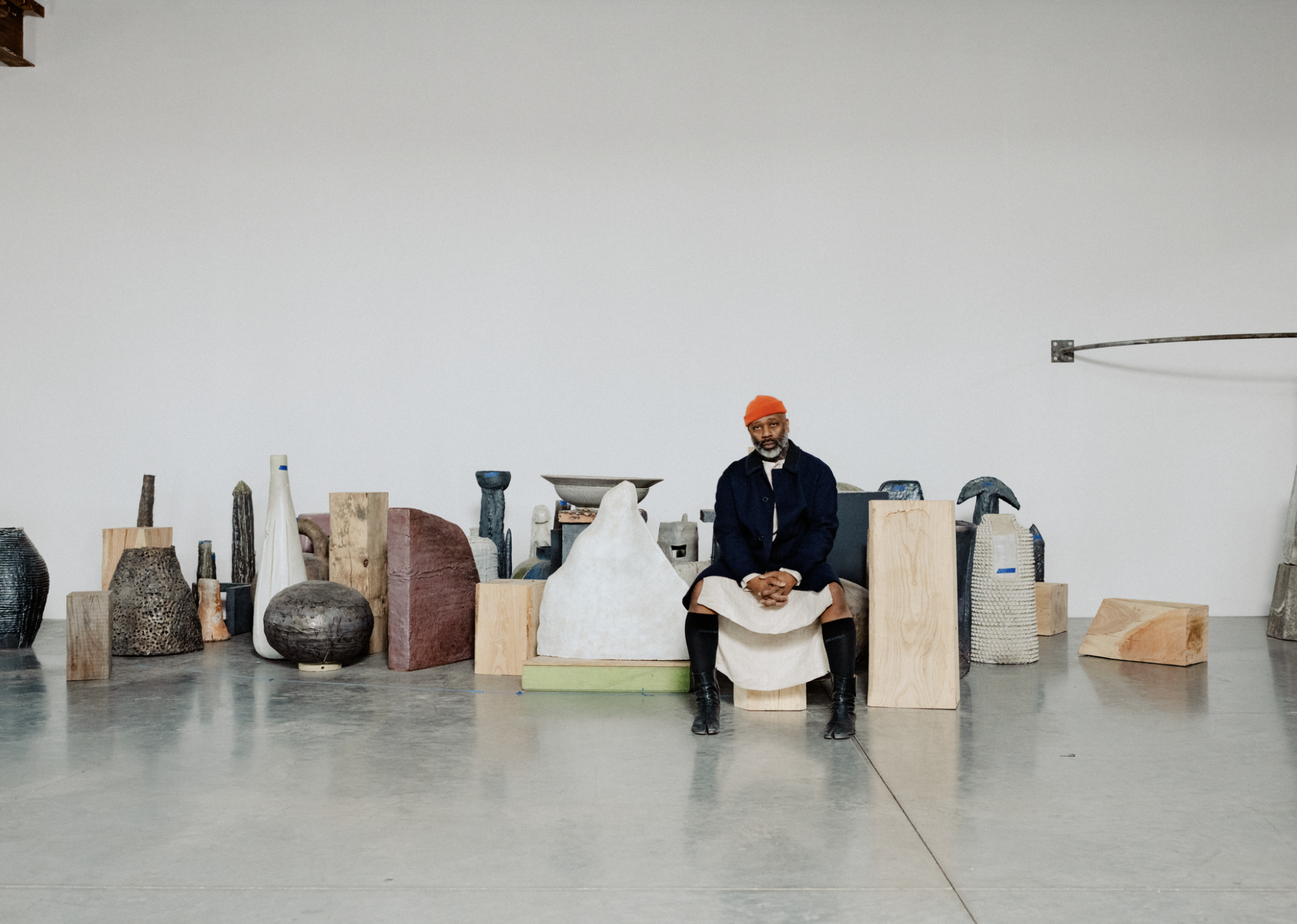 Theaster Gates is an artist whose practice finds roots in conceptual formalism, sculpture, space theory, land art, and performance. Trained in urban planning and within the tradition of Japanese ceramics, Gates's artistic philosophy is guided by the concepts of Shintoism, Buddhism and Animism - most notably honoring the "spirit within things." Foundational to Gates's practice is his custodianship and critical redeployment of culturally significant Black objects, archives, and spaces. Known for his recirculation of art-world capital, Gates smartly upturns art values, land values, and human values. In all aspects of his work, he contends with the notion of Black space as a formal exercise – one defined by collective desire, artistic agency, and the tactics of a pragmatist. Through the expansiveness of his approach as a thinker, maker, and builder, Gates extends the life of disappearing and bygone histories, places, and cultural traditions.